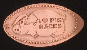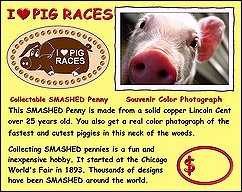 Do you have souvenirs for your 2008 Pig Racing season? No one can resist purchasing a souvenir photo of the cutest pigs and a collectable SMASHED penny right after watching your pig race show.