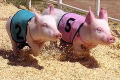 Everyone loves pig races and with a retail price of $1.00 to $1.50 it is a certain quick purchase for your audience as they leave the racetrack area. These are real, high quality photographs (not printed postcards) of the most photogenic piggies I could find. The I